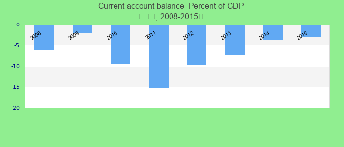 Current account is all transactions other than those in financial and capital items. The major classifications are goods and services, income and current transfers. The focus of the BOP is on transactions (between an economy and the rest of the world) in Percent of GDP.