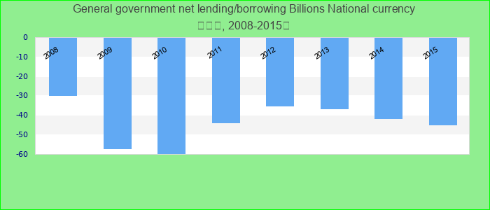 Net lending (+)/ borrowing (?) is calculated as revenue minus total expenditure. This is a core GFS balance that measures the extent to which general government is either putting financial resources at the disposal of other sectors in the economy and nonr Billions National currency.