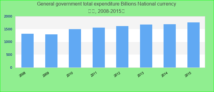 Total expenditure consists of total expense and the net acquisition of nonfinancial assets. Note: Apart from being on an accrual basis, total expenditure differs from the GFSM 1986 definition of total expenditure in the sense that it also takes the dispos Billions National currency.
